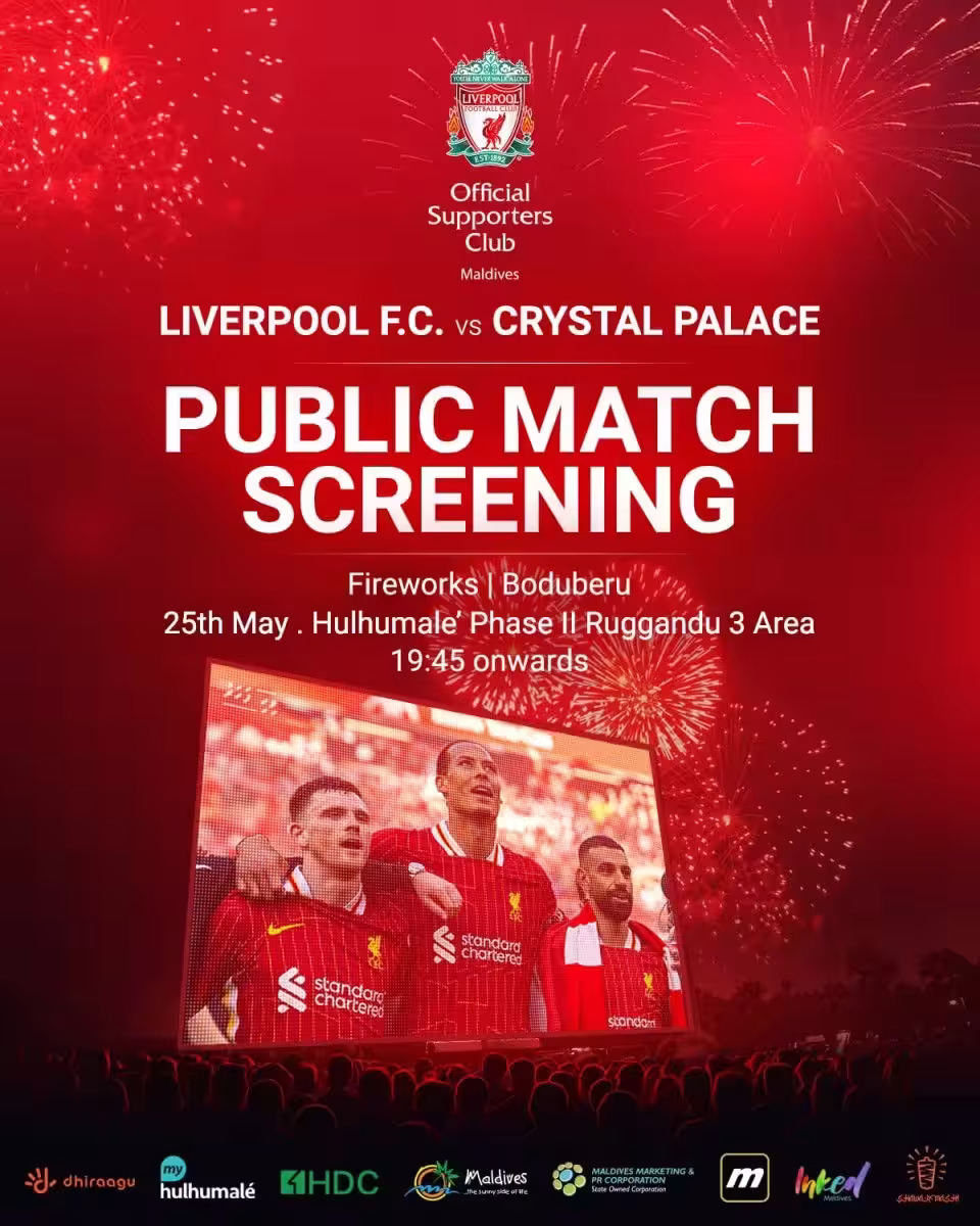 Liverpool FC's milestone 20th Premier League title was celebrated in grand fashion at a public viewing event organized by the Official Liverpool Supporters Club (OLSC) Maldives. Held on 25th May 2025 at 8:00 PM in the Ruhgandu Area of Hulhumale Phase 2, the event brought together fans and families for an unforgettable evening.