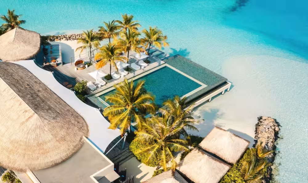 Dawn and dusk yoga and meditation sessions take place on serene overwater decks, where the rhythmic sound of waves sharpens mindfulness and lowers cortisol levels. At AVI Spa, therapies employ marine ingredients and water-inspired techniques to encourage relaxation, regulate circadian rhythms, and ease anxiety, mirroring the physiological benefits central to Blue Mind Theory. Guests may also select an exclusive five-course dinner with champagne served on a secluded sandbank in the Indian Ocean.