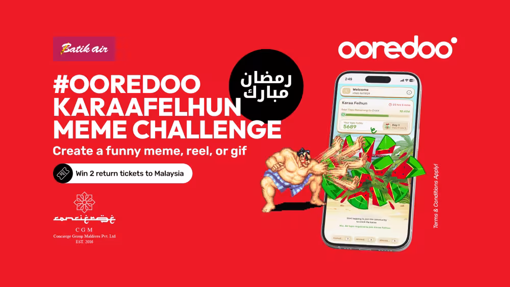 Ooredoo Maldives has rolled out the Ooredoo Karaa Felhun Meme Challenge, a lively contest that calls on customers to unleash their creativity by crafting hilarious memes, reels, or GIFs inspired by the viral Karaa Felhun Game. The winner will snag two return tickets to Malaysia, courtesy of Concierge Group Maldives.